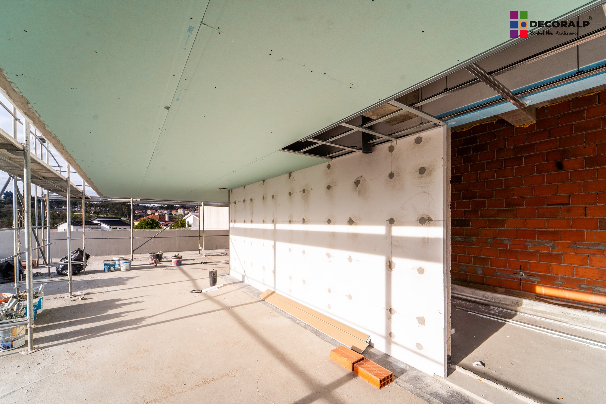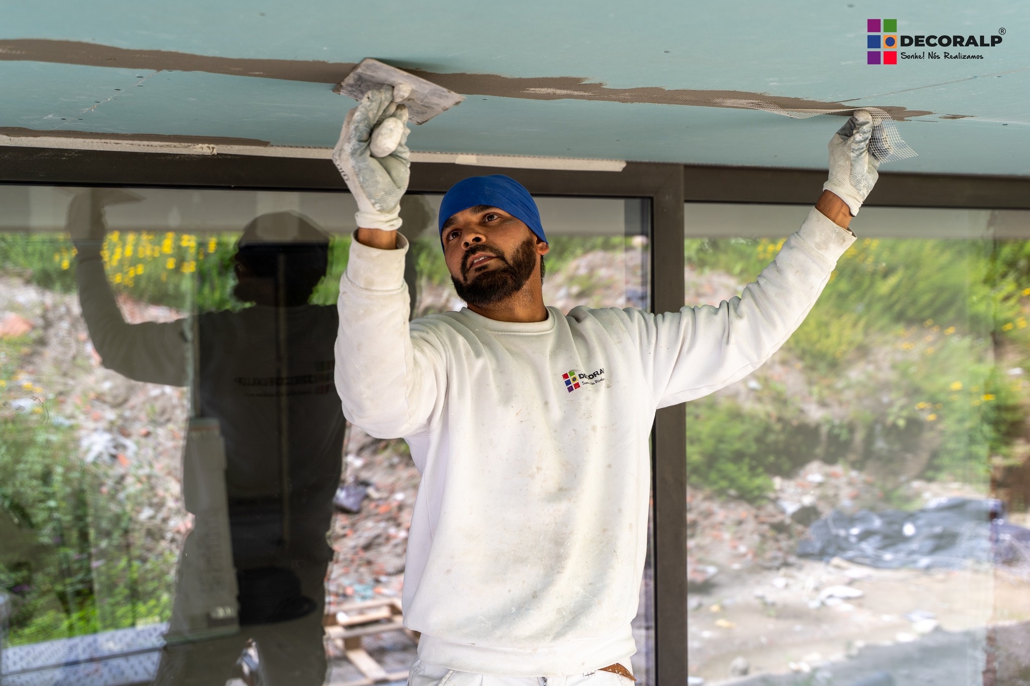 Somos responsáveis pela 𝗮𝗽𝗹𝗶𝗰𝗮𝗰̧𝗮̃𝗼 𝗱𝗲 𝗰𝗮𝗽𝗼𝘁𝗼, garantindo isolamento térmico e eficiência energética, e pela 𝗮𝗽𝗹𝗶𝗰𝗮𝗰̧𝗮̃𝗼 𝗱𝗲 𝗽𝗹𝗮𝗱𝘂𝗿, proporcionando conforto e qualidade nos interiores. Também é da nossa responsabilidade a aplicação de gesso, pinturas e outros acabamentos.