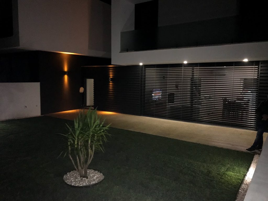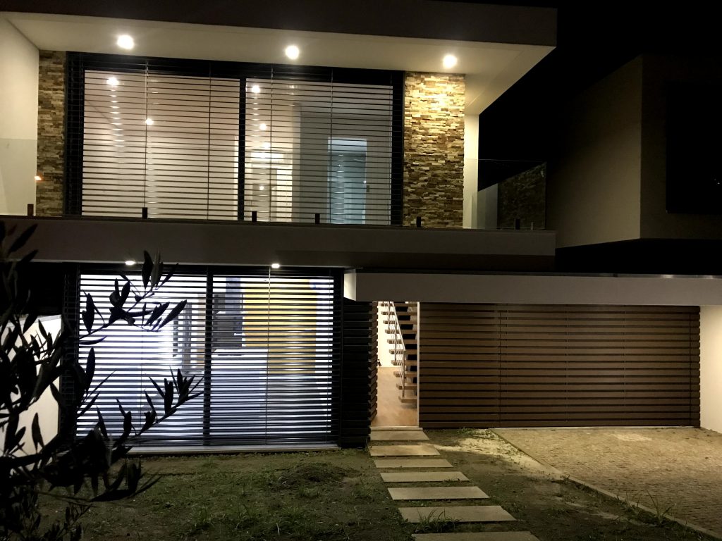 Moradia unifamiliar com uma arquitetura irreverente e moderna na qual a Decoralp realizou a aplicação de Capoto e assentamento de pedra na fachada exterior. Para além destas especialidades, também fomos responsáveis pela construção de tetos e paredes em pladur com rodapé embutido.